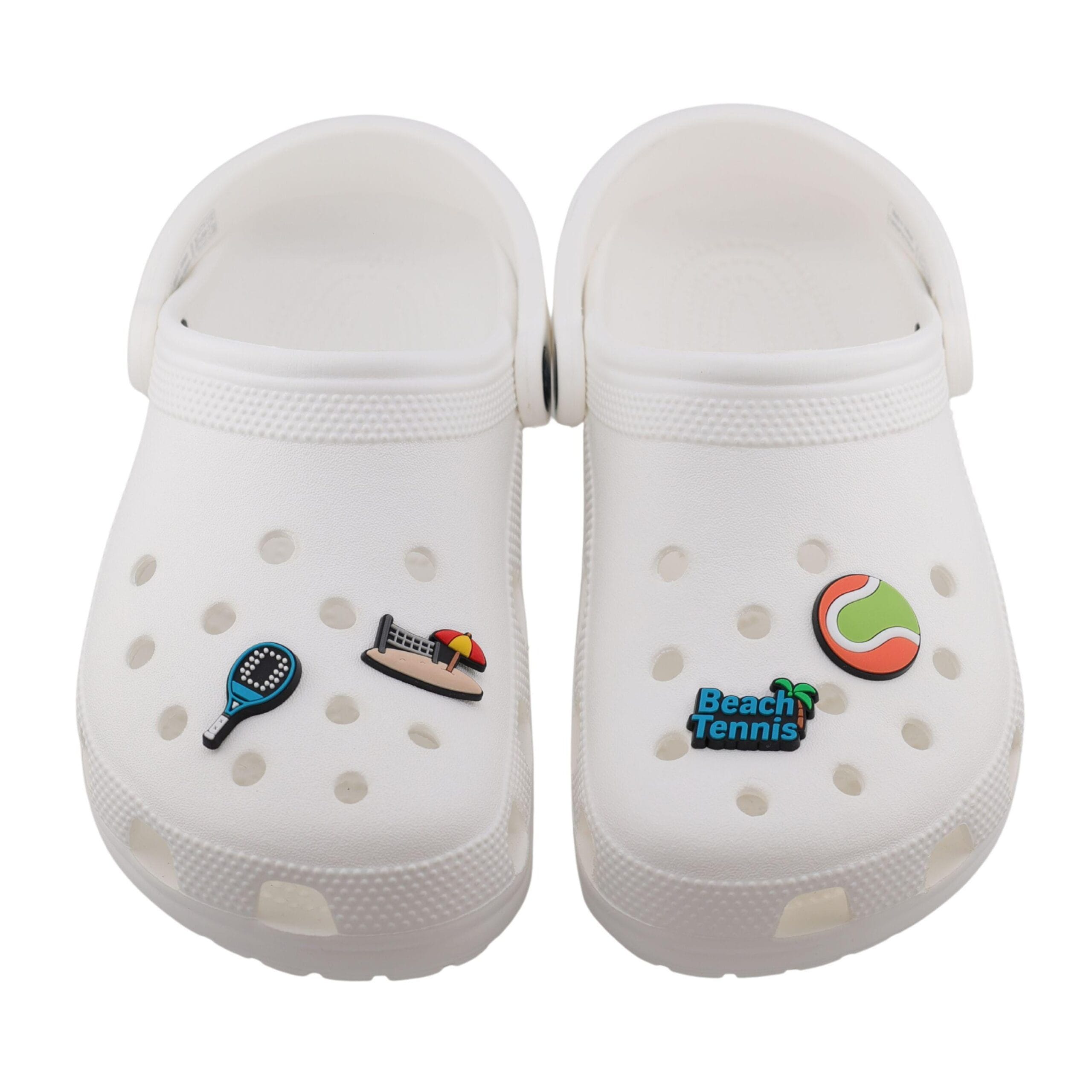 Bring the beach and your favorite sport together with these Beach Tennis Shoe Charms! Designed for lovers of sunshine, sand, and competition, these sporty PVC charms are perfect for clogs, sandals, sneakers, bags, and bracelets. Whether you’re a beach tennis player, summer athlete, or just love active, colorful accessories — these charms are a fun way to show your energy and style.