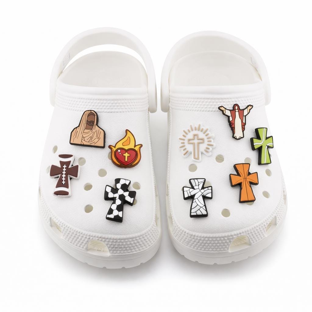 Express your faith with these Christian Faith Shoe Charms — thoughtfully designed to celebrate love, hope, and devotion. Featuring meaningful designs inspired by Jesus, sacred hearts, and crosses in a variety of styles and colors, these charms are a beautiful way to carry your faith with you every day.
