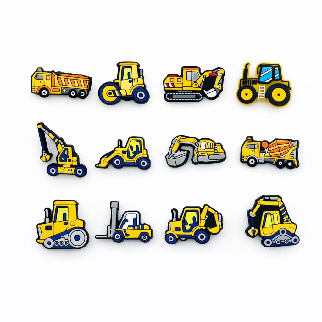 Build bold style with these Construction Vehicle Shoe Charms — perfect for kids, construction lovers, vehicle fans, and anyone who loves heavy machinery. Featuring detailed designs inspired by dump trucks, excavators, bulldozers, cranes, loaders, forklifts, and construction equipment, these charms bring worksite energy and fun to everyday accessories.