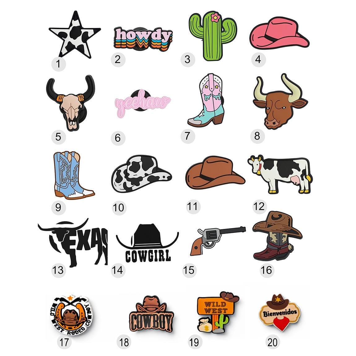 Made from waterproof PVC, each charm is crafted with detail and bold colors. Whether you’re heading to a rodeo, rocking your boots at a country fair, or just want to show your cowgirl pride — these charms are a fun and rugged way to personalize your footwear.